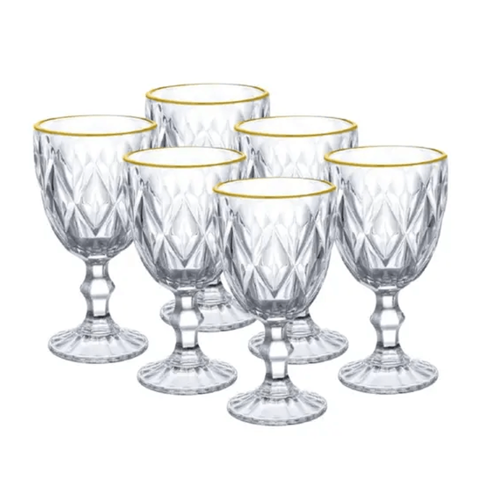 Confeccionadas em vidro resistente , com detalhes no seu exterior e bordas com filete dourado que trazem um estilo a mais para sua mesa. Beleza e sofisticação para qualquer ocasião.