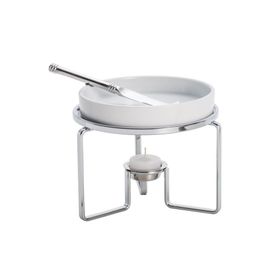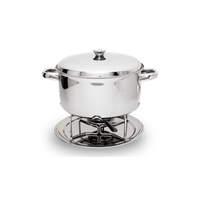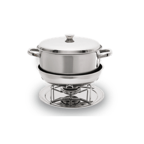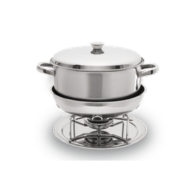 Rechaud Redondo em Aço Inox com Tampa de Vidro e Fogareiro Banho Maria 8L GP Inox