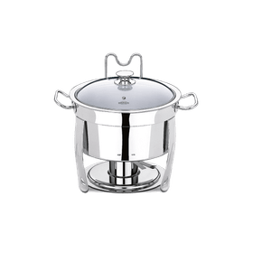 Rechaud Redondo em Aço Inox com Tampa de Vidro e Fogareiro Banho Maria 5L GP Inox